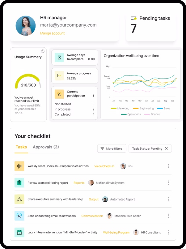 AI-powered voice analysis delivering real-time organizational well-being insights.